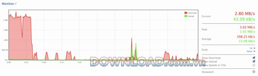 Bảng Monitor sẽ hiển thị biểu đồ cập nhật theo từng giây để cho bạn biết chuyện gì đang xảy ra với kết nối của bạn vào thời điểm thực: